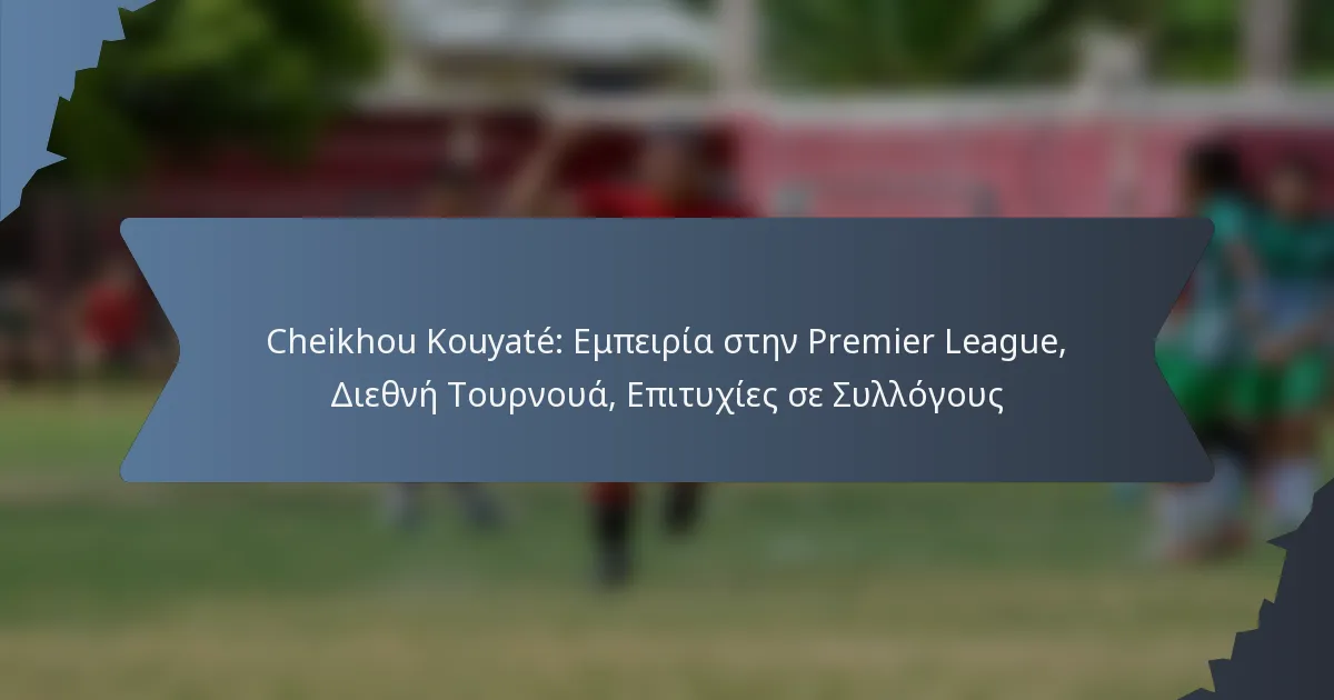 Ο Cheikhou Kouyaté έχει καθιερωθεί ως μια εξέχουσα προσωπικότητα στην Premier League, κάνοντας σημαντικές συνεισφορές με τη West Ham United και την Crystal Palace. Η διεθνής εμπειρία του με την εθνική ομάδα της Σενεγάλης αναδεικνύει περαιτέρω τις ικανότητές του, ιδιαίτερα σε σημαντικά τουρνουά όπως το Κύπελλο Εθνών Αφρικής. Καθ’ όλη τη διάρκεια της καριέρας του, ο Kouyaté έχει επιτύχει αξιοσημείωτη επιτυχία σε συλλογικό επίπεδο, κερδίζοντας διάφορους τίτλους και επιδεικνύοντας την ηγεσία και το ταλέντο του τόσο σε εγχώριες όσο και σε παγκόσμιες σκηνές.